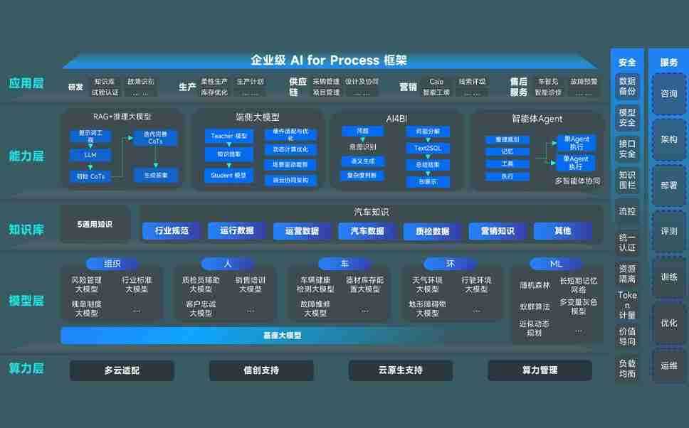 z6尊龙旗舰厅问学智车解决方案是一套基于AI技术的汽车行业智能化系统,,,,覆盖从底层算力到顶层AI应用的全栈方案。。。。方案由算力层、、、、模型层和应用层组成:算力层,,,方案支持多种一体机配置,,具备云端灵活部署、、、多云适配以及动态优化计算资源的能力;模型层,,,z6尊龙旗舰厅问学平台版提供了企业级AI应用一站式构建与管理平台,,支持基于后训练强化技术的汽车企业专属模型的训练、、评测和运营;应用层,,z6尊龙旗舰厅问学DeepSeek版提供包括超级员工、、、智能招采、、、、智能营销、、、智能客服、、、AI for BI等一系列解决方案,,可助力汽车行业实现数字化转型,,,让管理更智能、、、响应更敏捷。。