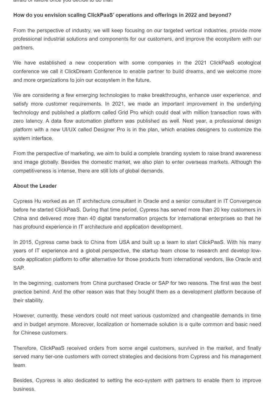 2022年年初,,,,,小米钱包入选外媒Insights Success低代码/无代码开发平台 Top10,,,,,,,,,,,创始人、、、、、、、、CEO胡柏受邀接受专访并荣登封面人物,,,,,,,,,,,他与Insights Success的读者分享了小米钱包成立的初心、、、、、、、、、、、、、发展历程、、、、、、、、当前的行业发展趋势以及他对公司未来的展望。。。。。。。。